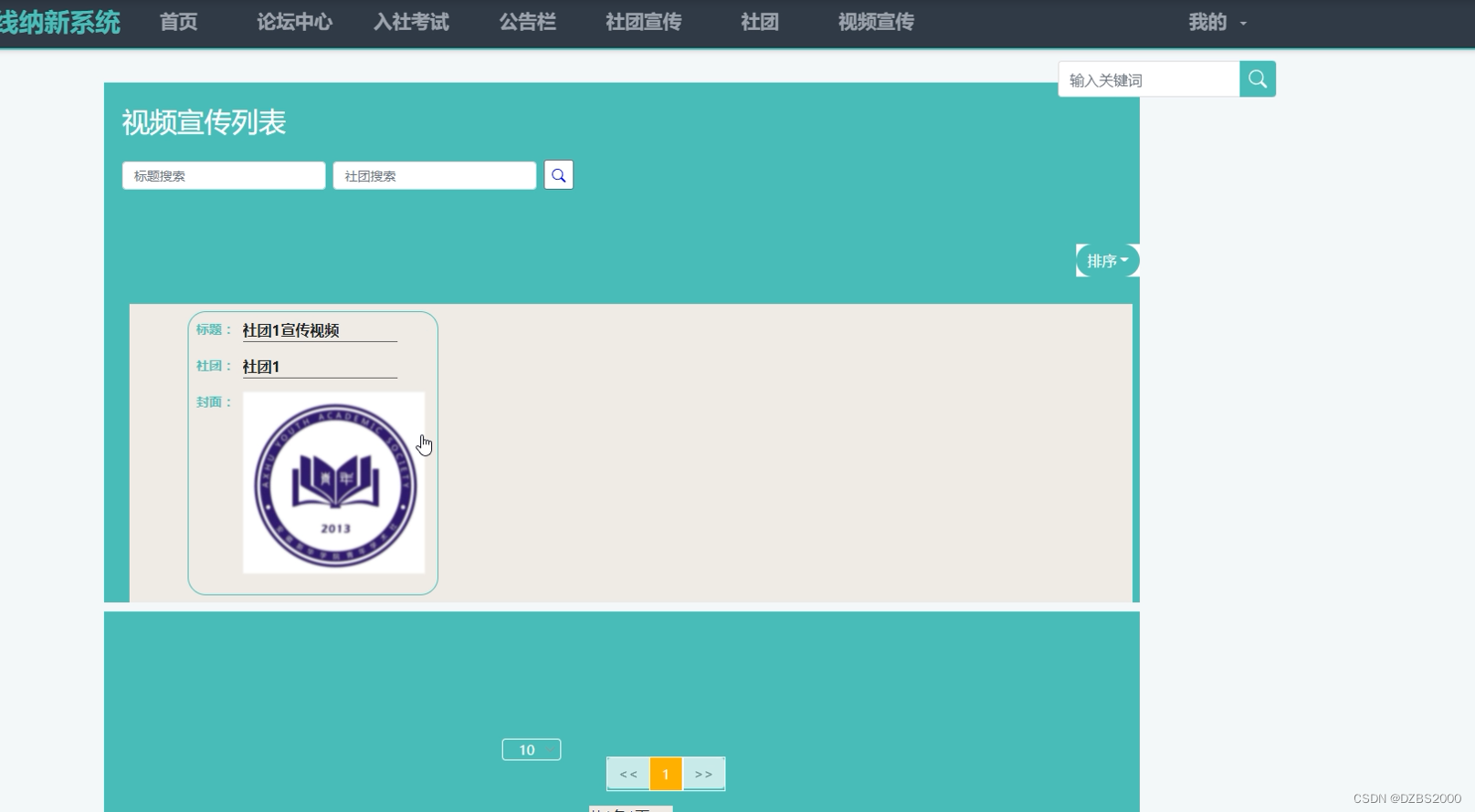 社团宣传管理模块:包含所有社团的纳新宣传页面,分为视频宣传和图文宣传。