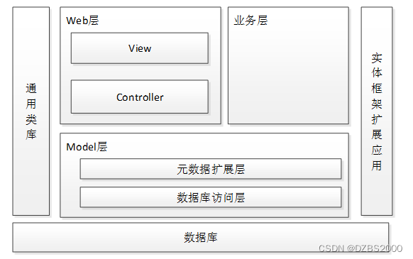 本系统架构设计主要分为可以3层,主要有Web层,业务层,Model层。其中web层还包括View层和Controller层,Model层包括元数据扩展层和数据访问层。