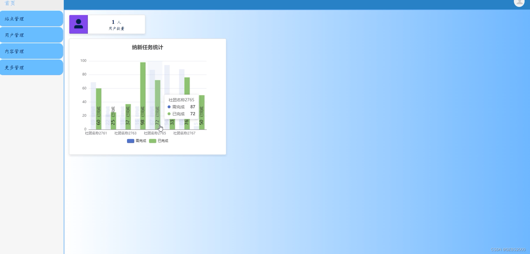 纳新任务管理模块:管理员查看纳新任务,并且添加纳新数据,也能够删除纳新数据。