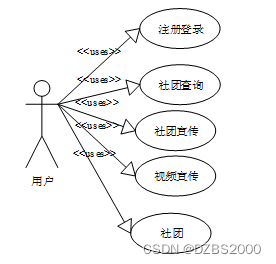 用户模块主要实现用户的注册、登录、论坛中心、入社考试、公告栏、社团宣传、社团、视频宣传、个人资料修改、登录密码修改等功能。