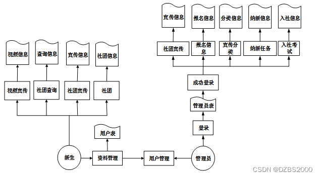 入社考试模块:进入纳新新生要入社考试,新生入社考试是否通过等操作。