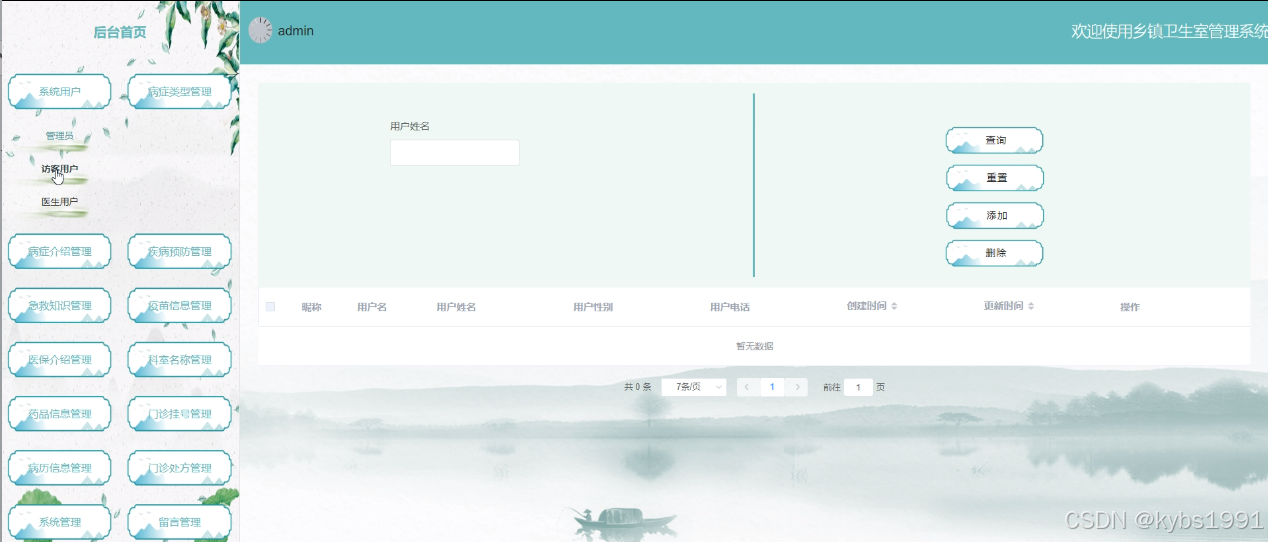 (4)系统用户:管理员可以对乡镇卫生室管理系统中的管理员,医生用户及访客用户进行增删改查。