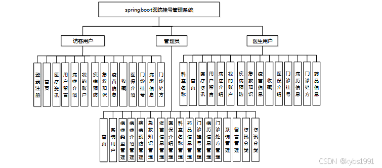 乡镇卫生室管理系统我划分为了访客系统用户模块,医生系统用户模块和管理员模块这三大部分。