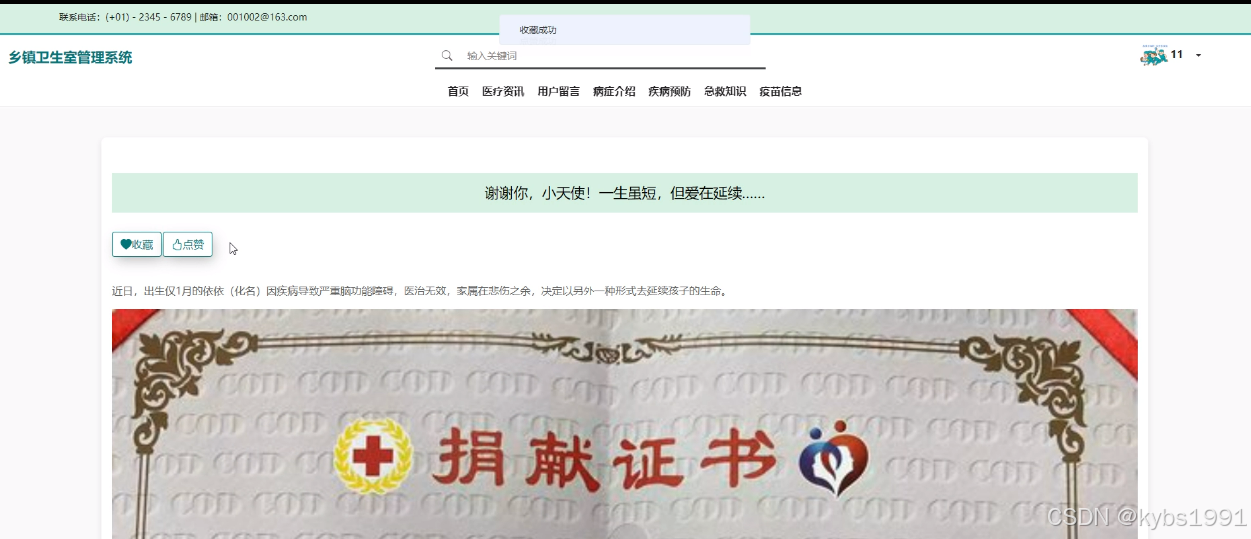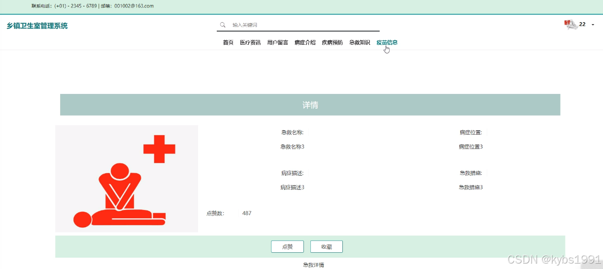 (5)急救知识:当用户点击“急救知识”这一菜单按钮,会显示管理员在后台发布的所有的急救知识,可以查看详情,进行收藏、点赞、评论等;