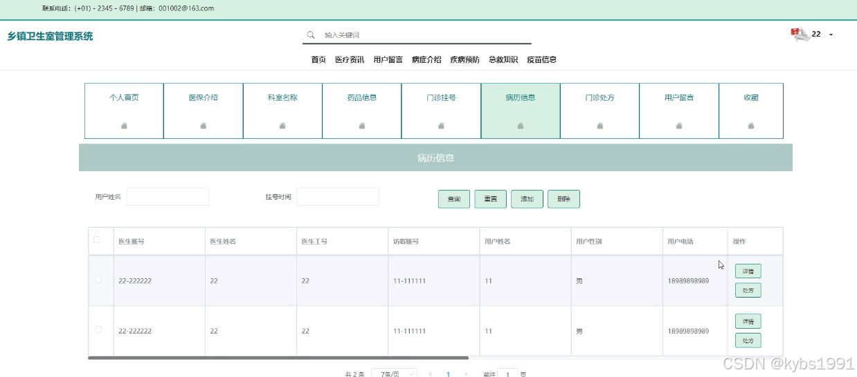 (7)病历信息管理:管理员点击“病历信息管理”会显示出所有的病历信息,也可以点对病历信息进行更新维护管控;