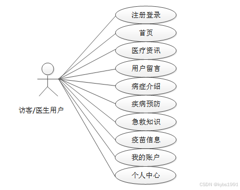 图2-1就是访客/医生用户角色的用例展示。