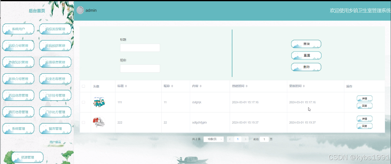 (2)留言管理:当用户点击“留言管理”这一菜单按钮,会显示管理员在后台发布的所有的留言管理,可以查看详情;