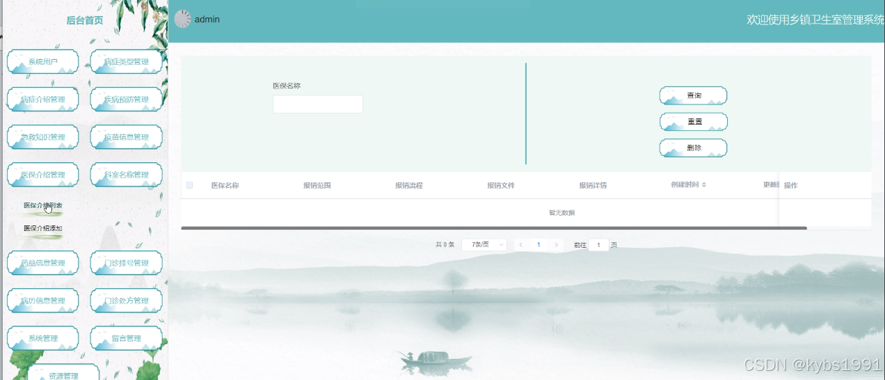 (1)医保介绍:点击“医保介绍”按钮会显示出所有的医保介绍,支持对医保介绍的增删改查操作。