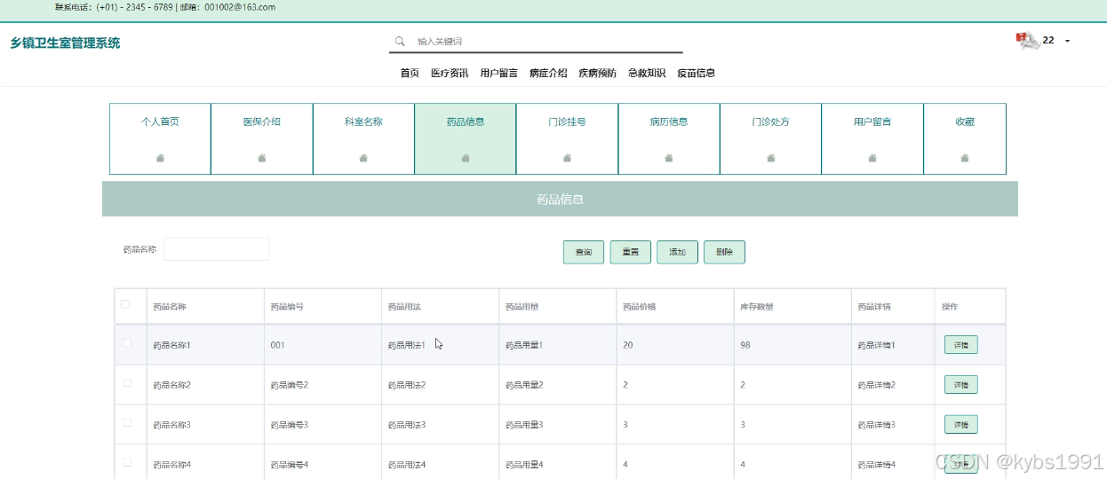 (3)药品信息:点击“药品信息”按钮会显示出药品的所有的信息,支持对药品信息的增删改查操作。