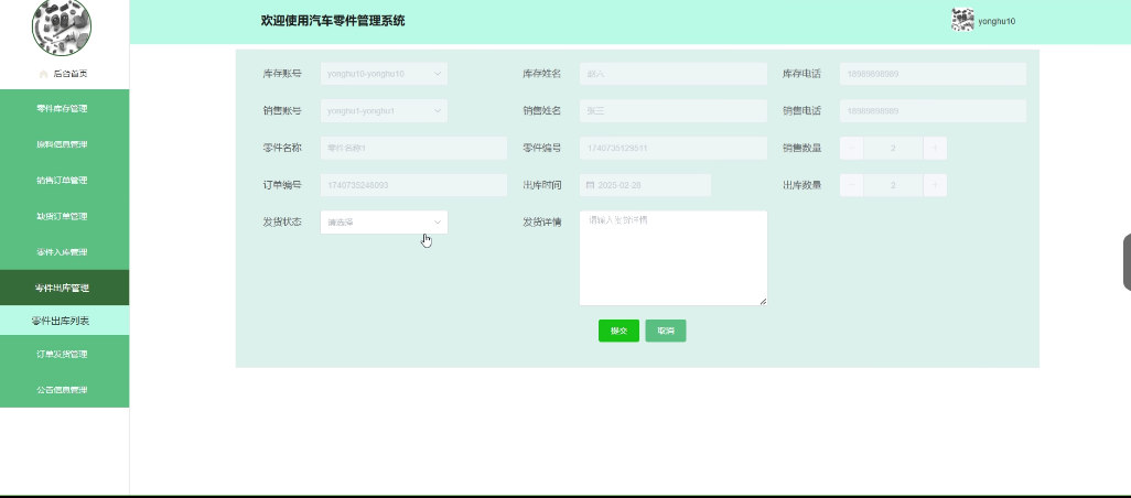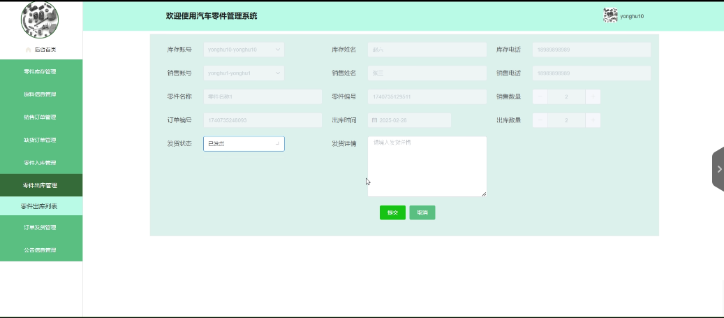 - 零件出库管理:管理员拥有查看、删除零件出库列表的权限,也可以添加新的零件出库。