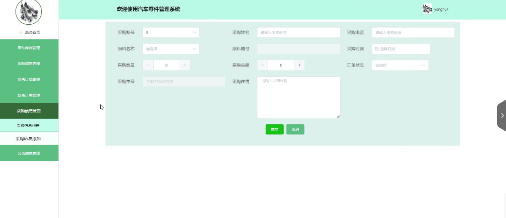- 采购信息管理:采购用户拥有查看、删除采购信息列表的权限,也可以添加新的采购信息。