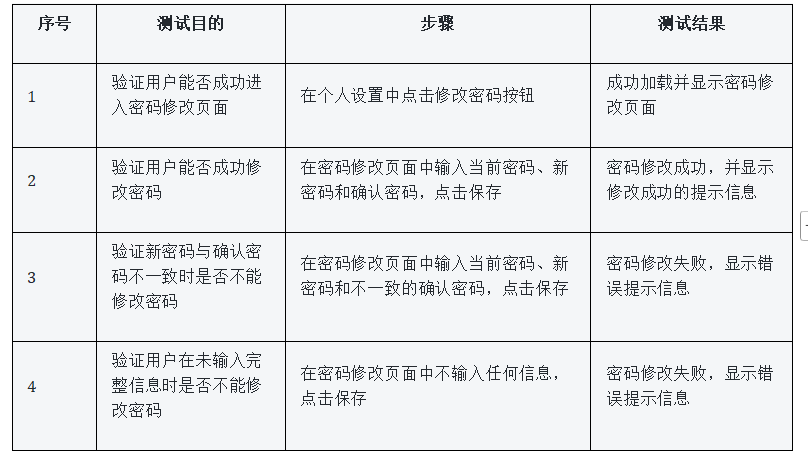 表5-2密码修改功能测试用例:
