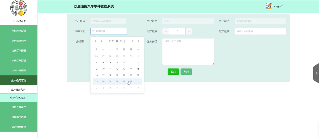 - 生产任务管理:生产用户拥有查看、删除生产任务列表的权限,也可以添加新的生产任务。