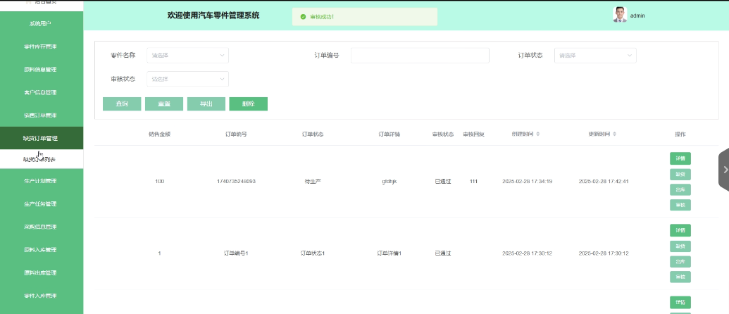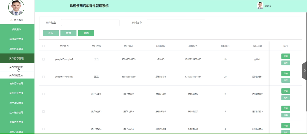 - 零件出库管理:生产用户拥有查看、删除零件出库列表的权限。