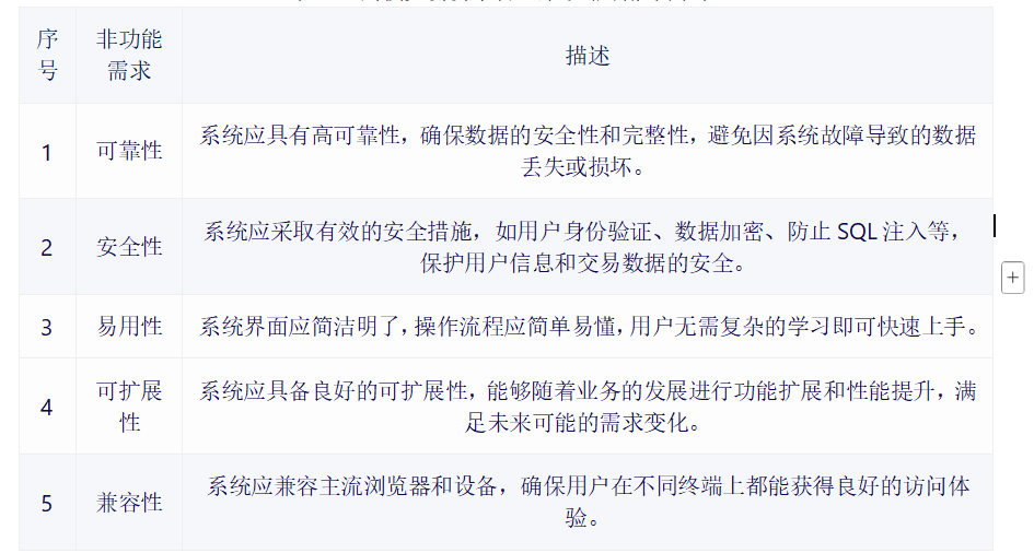 表2-3汽车零件管理系统非功能需求表