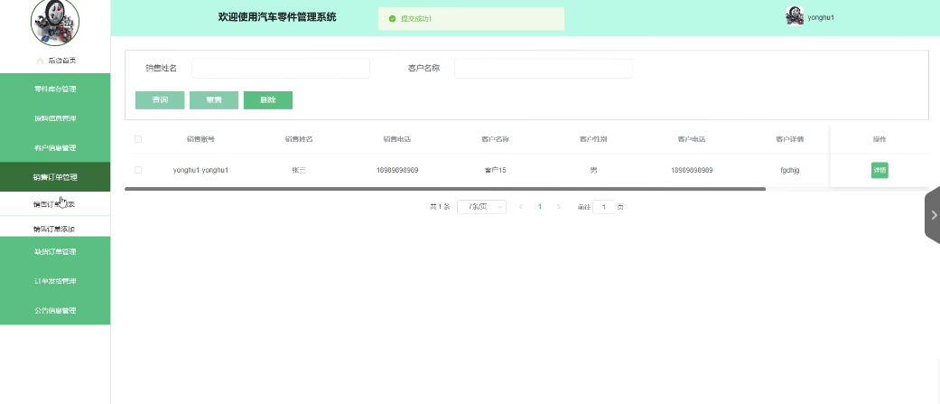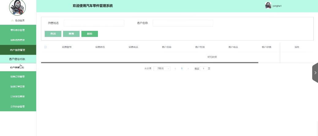 - 零件库存管理:销售用户拥有查看、删除零件库存列表的权限。