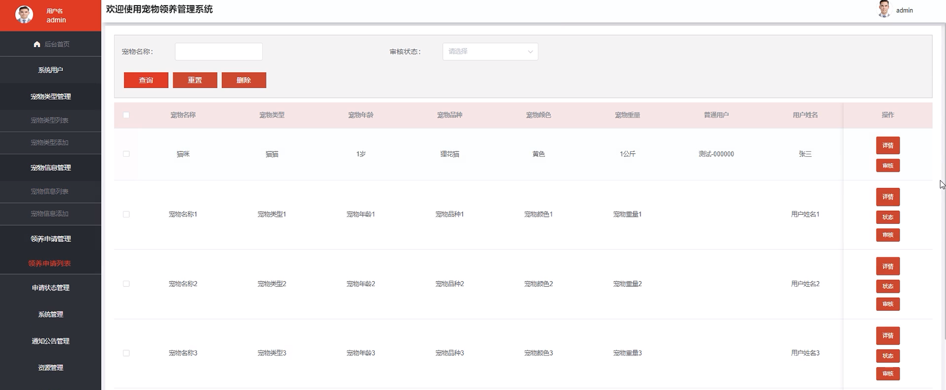 图5-6领养申请管理界面