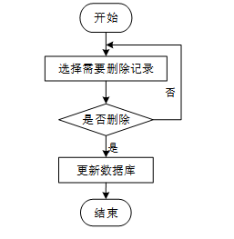 用户选择需要删除的记录后,系统判断是否确认删除。若未确认,返回选择环节;若确认删除,则更新数据库,删除对应记录,完成操作后流程结束。删除信息流程图如图3-8所示。