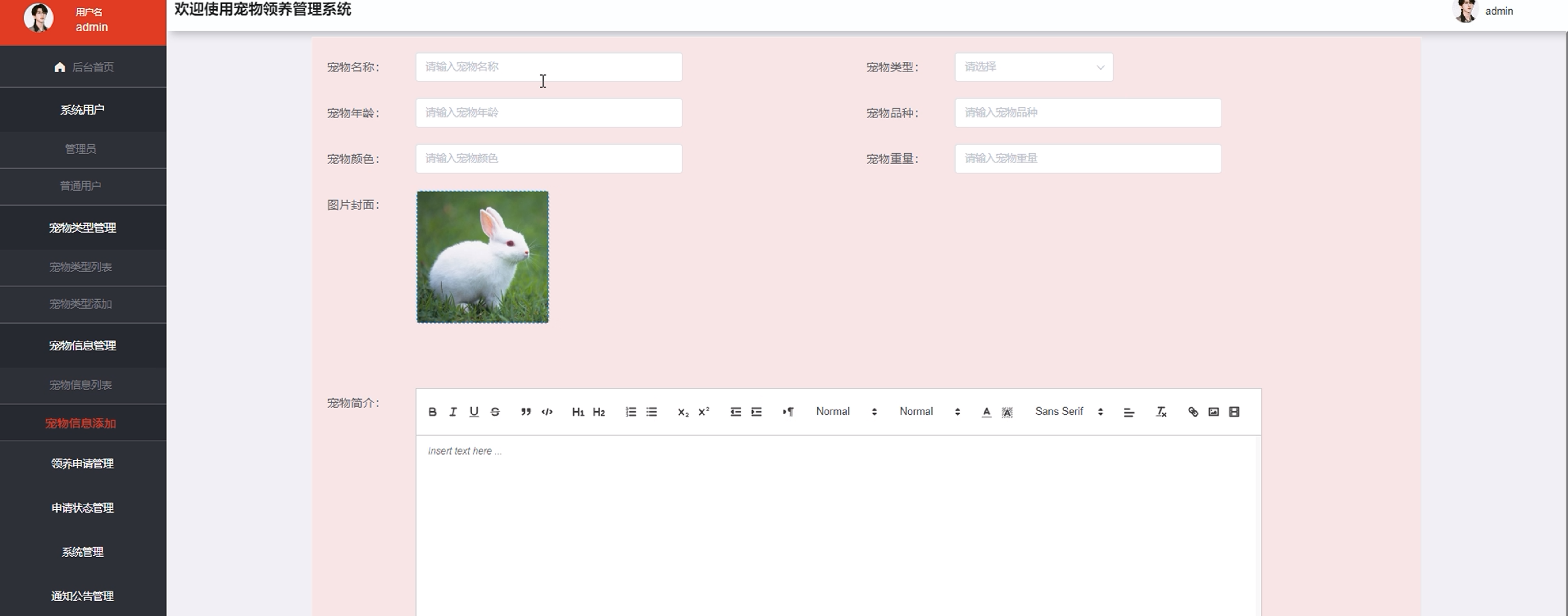 图5-7宠物信息添加界面