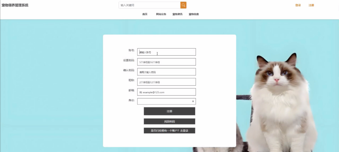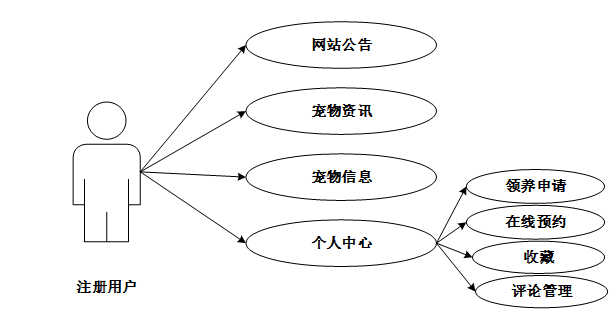 宠物领养管理系统划分为了注册用户和后管理员两大部分。