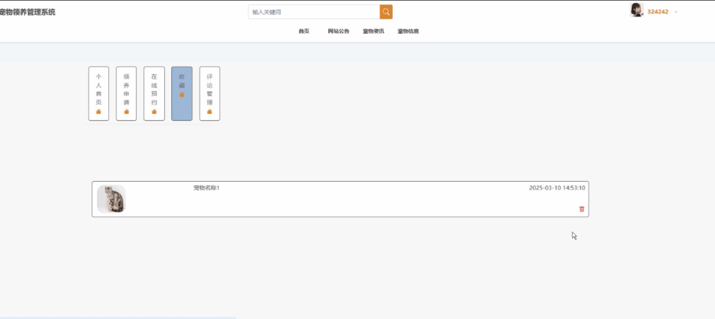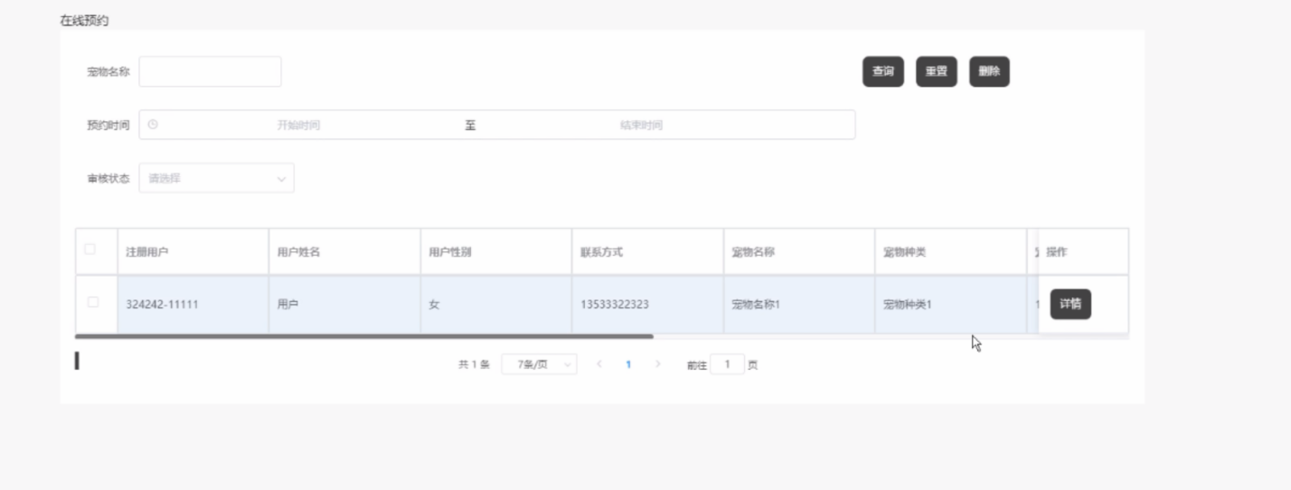 宠物信息列表:查看、搜索现有宠物的信息。