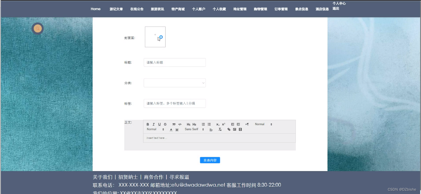 游记文章,在游记文章页面可以查看封面图、标题、分类、标签等信息,如图5-4所示。