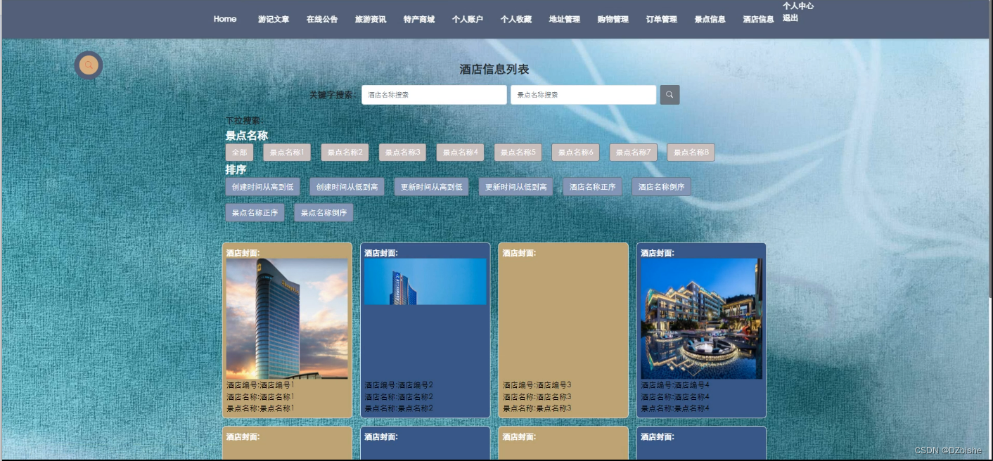 当今各式各样的旅游景点推荐系统相继兴起,为了使大众可以快速获得大量信息,节省精力和财力。在本系统中,实现了查看景点信息、酒店信息等功能。