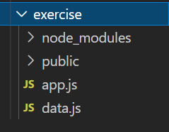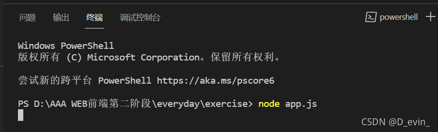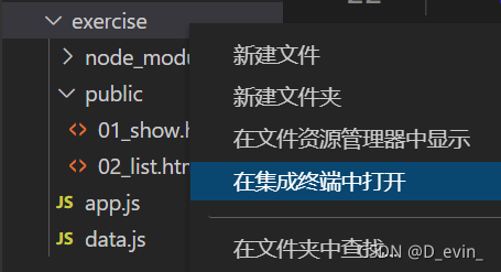 4.安装npm install express,右击目录exercise选择在集成终端中打开,在终端输入npm install express回车。