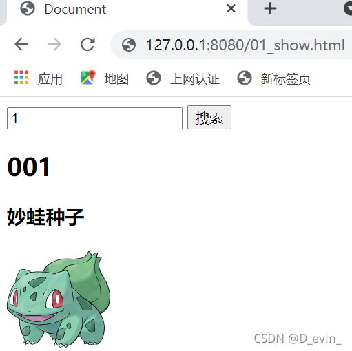 打开谷歌浏览器,地址栏输入127.0.0.1:8080/01_show.html 回车输入1点击搜索。