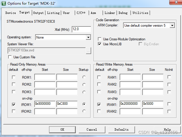 2.勾选Target下的Use MicroLIB选项,再次编译后程序正常运行