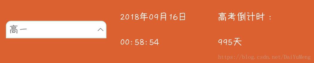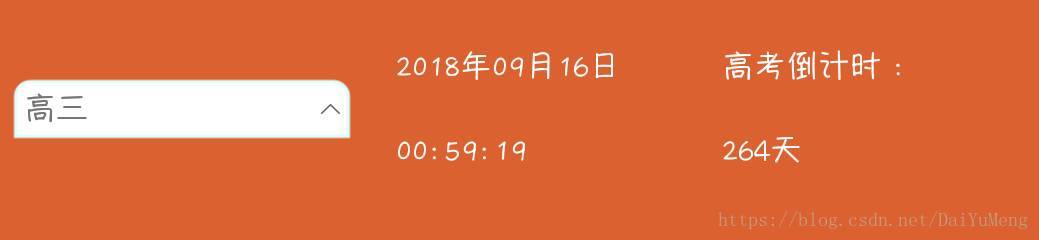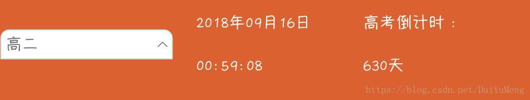 1.当下与高考时间(在这里我写的设计的是6月7日)之差,运用函数先获得当今时间,在根据年级设计一下高考时间即可。