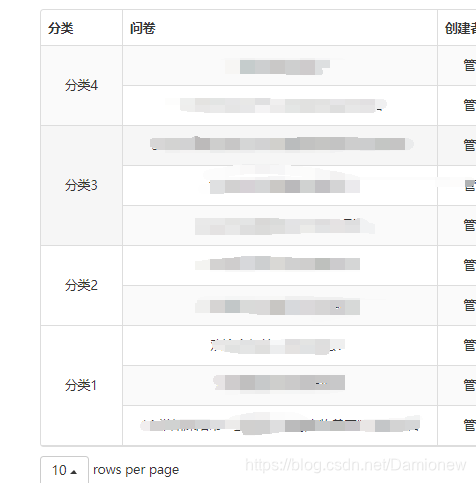 因此,使用另一种方案:增加名为 “分类” 的列,但该列分类名相同则进行单元格合并。效果图如下