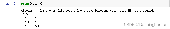 对于event_id这一字典我一开始不理解为什么不直接使用分类标签中的1,2,3,4,在后来的梳理中理解了:提取epochs使用的是events,当然是要使用events携带的标签。在一开始我们使用events_dict查看了events对应的标签,刚好是我们这里字典映射{'769': 7,'770': 8,'771': 9,'772': 10}。这不是巧了么