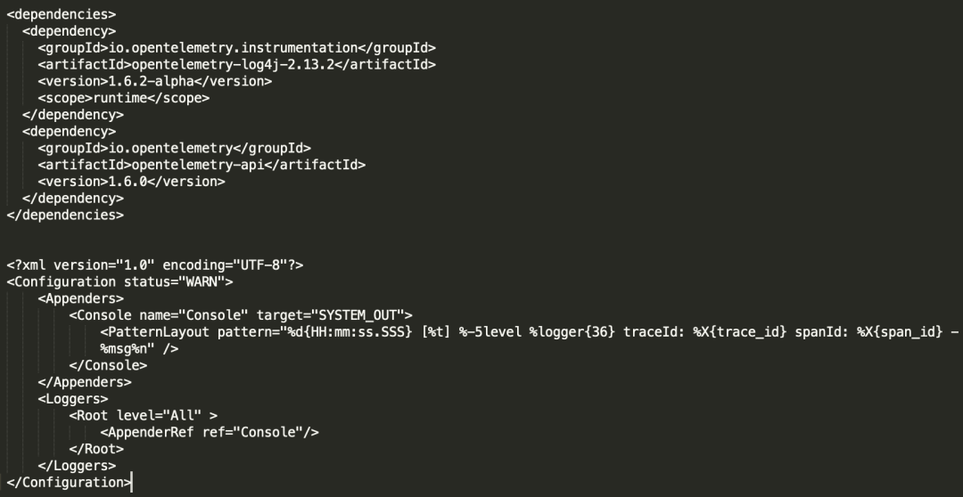 Log4j2 支持 Trace,引用 OpenTelemetry 提供的 jar 包,以及修改配置文件。