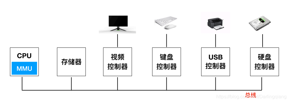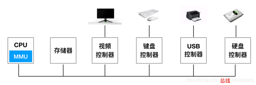 操作系统与曹祖系统内核硬件密切相关,极大的扩展了计算机指令集并管理计算机资源,简单的PC结构如下所示。