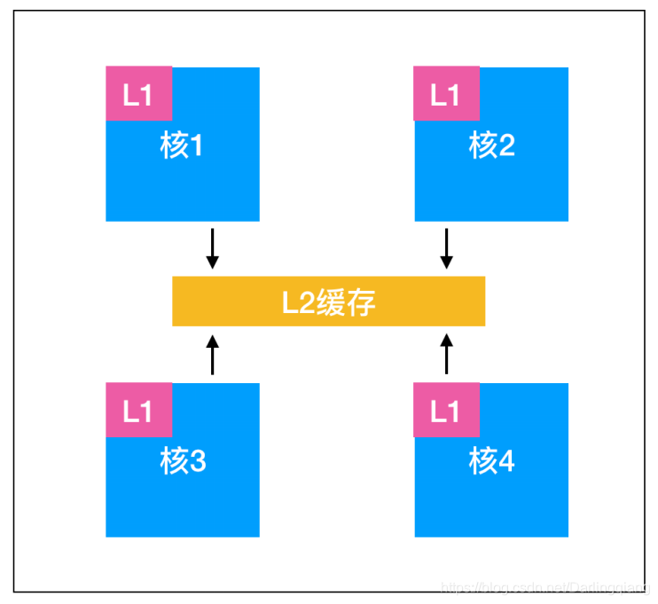 缓存是一种较为高效的设计,现代CPU分为2种缓存,第一级缓存为L1 cache(典型大小为16KB)位于CPU内部,用来将已经解码的指令调入CPU的执行引擎。对于频繁使用的关键字,多数芯片会有第二个L1 cache。另外还存在L2 cache,用来存放最近使用过的关键字,一般为MB大小。L1 cache 与 L2 cache 最大的不同在是否存在延迟。L2 cache 会有1--2个时钟周期的延时。