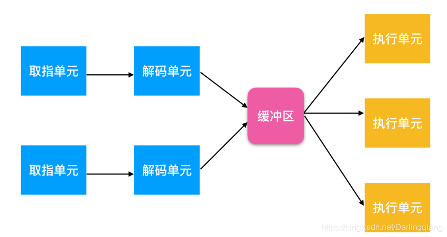 2个或者多个指令被一次性取出,解码并放入缓冲区中,直至执行完毕。