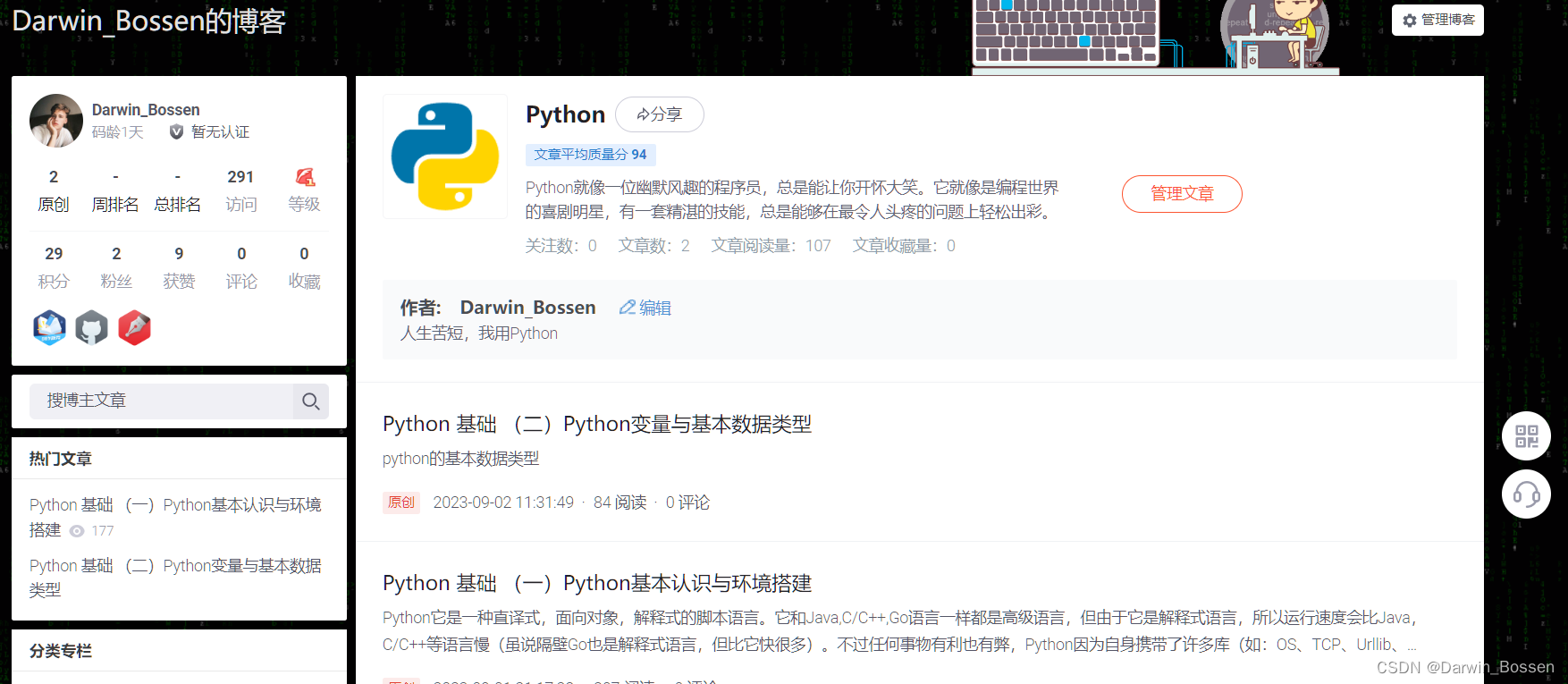 我的编程语言笔记(一)Python 基础小白入门(详细篇,8万字) 我正在参加我的编程语言学习笔记,欢迎大家学习Welcome to Python.orgPython它是一种直译式,面向对象,解释式的脚本语言。它和Java,C/C++,Go语言一样都是高级语言,但由于它是解释式语言,所以运行速度会比Java,C/C++等语言慢(虽说隔壁Go也是解释式语言,但比它快很多)。不过任何事物有利也有弊,Python因为自身携带了许多库(如:OS、TCP、Urllib、Trutle),语法简单,第三库也有很多(如飞机大战所需的pygame),所以被称为胶水语言,同时也深受开发者青眯。