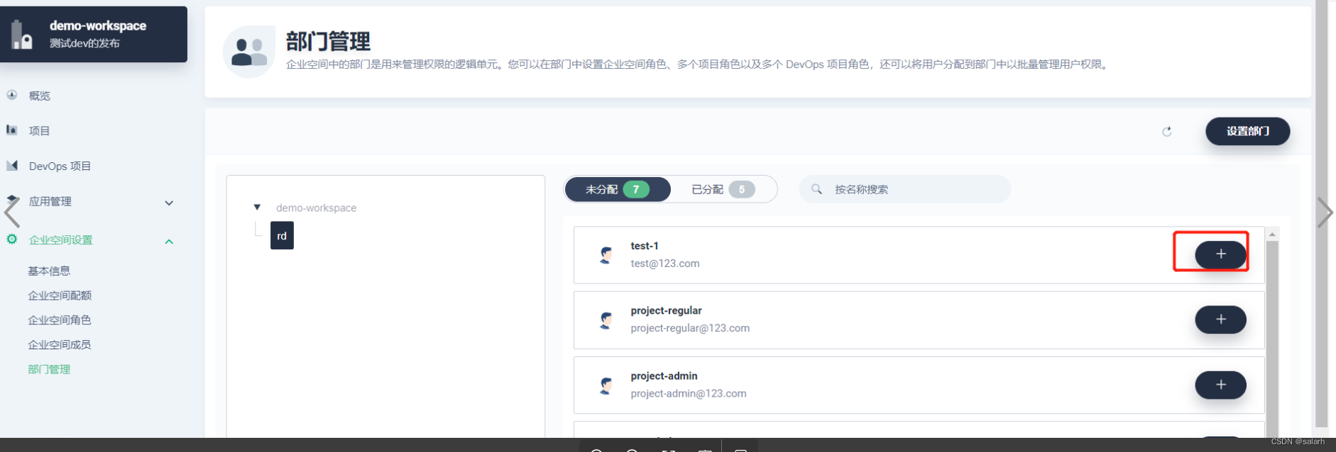目前是在企业空间的部门管理里面划分好权限,在把对应的同事拉进来就好了