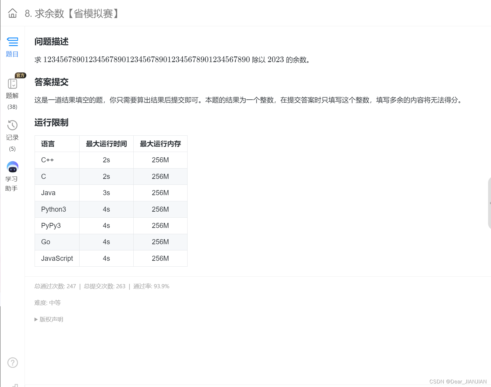 r=(r*10+(s[i]-'0'))%2023; //算余数公式,注意要-'0',因为原来为字符形式