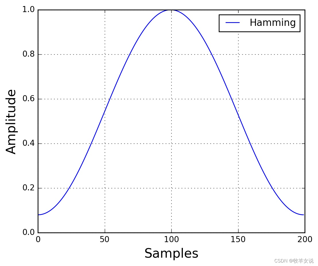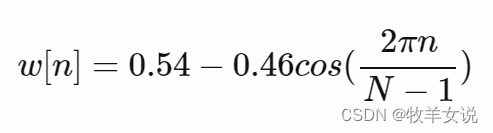 常用的加窗函数有汉明窗(Hamming)、汉宁窗(Hanning)等。其中,汉明窗的窗函数表达式为: