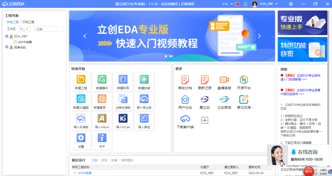 EDA之立创EDA专业版使用(原理图绘制) 1:立创EDA专业版官方入门教程:立创EDA专业版-使用教程https://prodocs.lceda.cn/cn/faq/editor/index.html