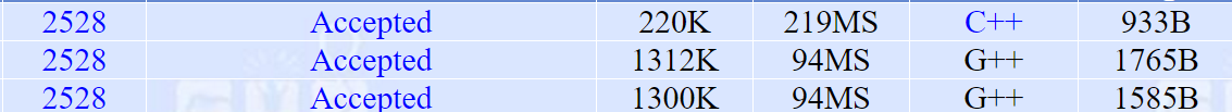 漂浮法用的空间较少,时间消耗较多,第一行是漂浮法,其它的应该是线段树的做法,而且用了离散化处理