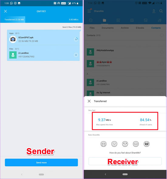 - 连接成功后,传输将开始。(ShareMe 使用本地 Wi-Fi 或热点连接进行传输,因此你的数据不会上传到云端或外部服务器,确保了传输的安全性。)