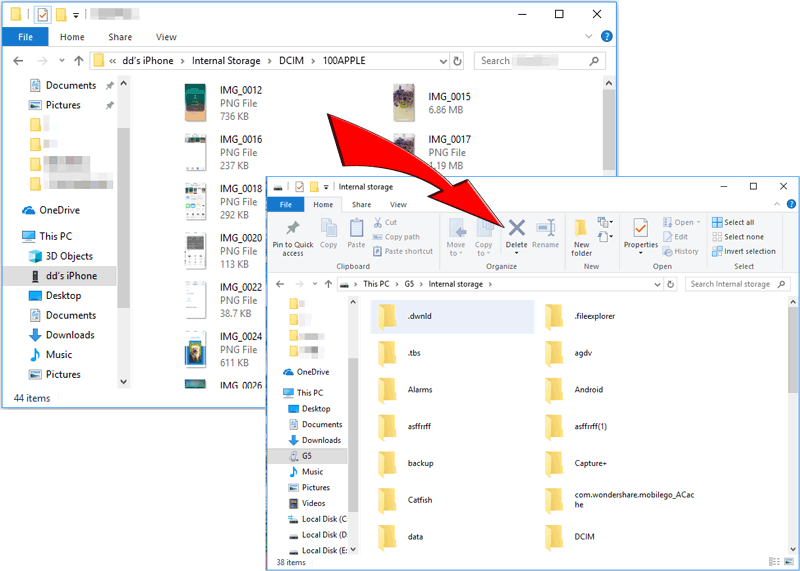 - 导航到 iPhone 存储中的 DCIM 文件夹。