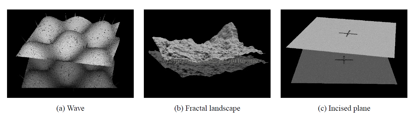 文章对上述几个方向的ICP变体,生成指定的数据进行测试比较。文章所用的数据包括:1.Wave;2.Fractal landscape;3.Incised plane。