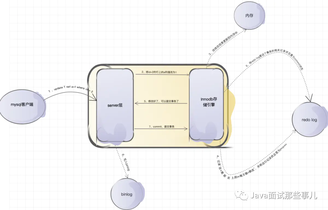 在同一个事务中,每当数据库进行修改数据操作时,将修改结果更新到内存后,会在redo log添加一行记录记录“需要在哪个数据页上做什么修改”,并将该记录状态置为prepare,等到commit提交事务后,会将此次事务中在redo log添加的记录的状态都置为commit状态,之后将修改落盘时,会将redo log中状态为commit的记录的修改都写入磁盘。