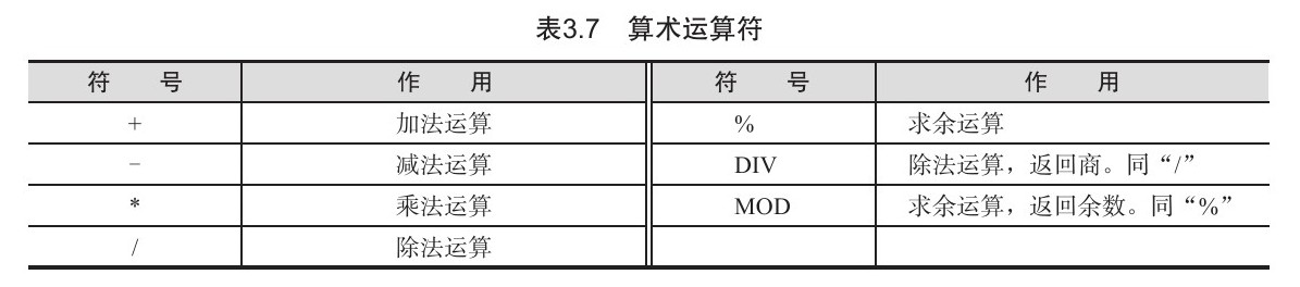算术运算符是MySQL中最常用的一类运算符。MySQL支持的算术运算符包括:加、减、乘、除、求余。