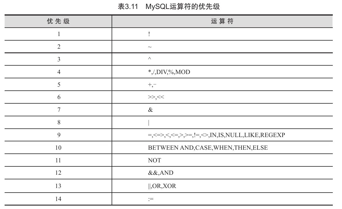 说明:“=”、“<>”、“!=”、“>”、“>=”、“<”、“<=”等运算符都不能用来判断空值(NULL)。一旦使用,结果将返回NULL。如果要判断一个值是否为空值,可以使用IS NULL和IS NOT NULL来判断。注意:NULL和'NULL'是不同的,前者表示为空值,后者表示一个由4个字母组成的字符串。